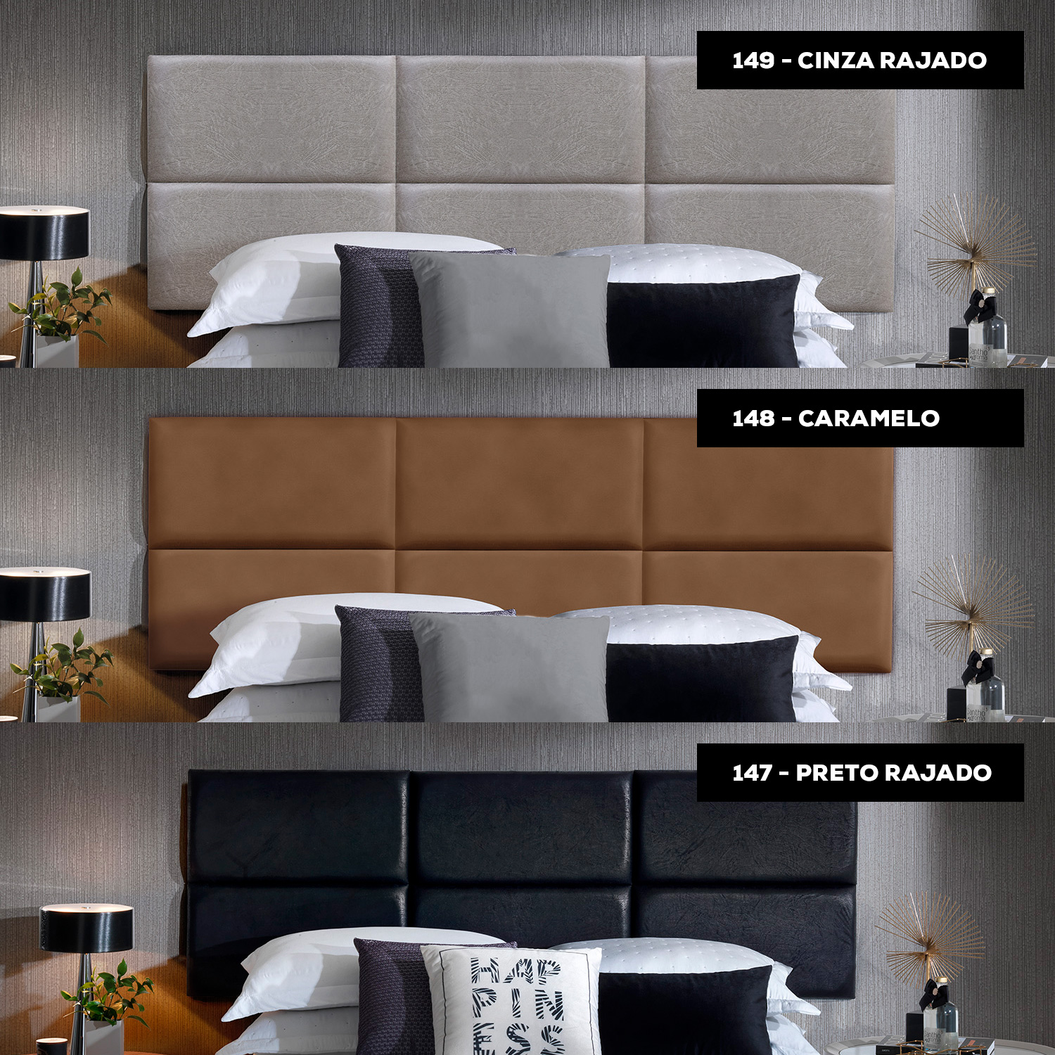 Para compor cabeceira de 8 módulos para colchão King, use 2 conjuntos de solteiro.