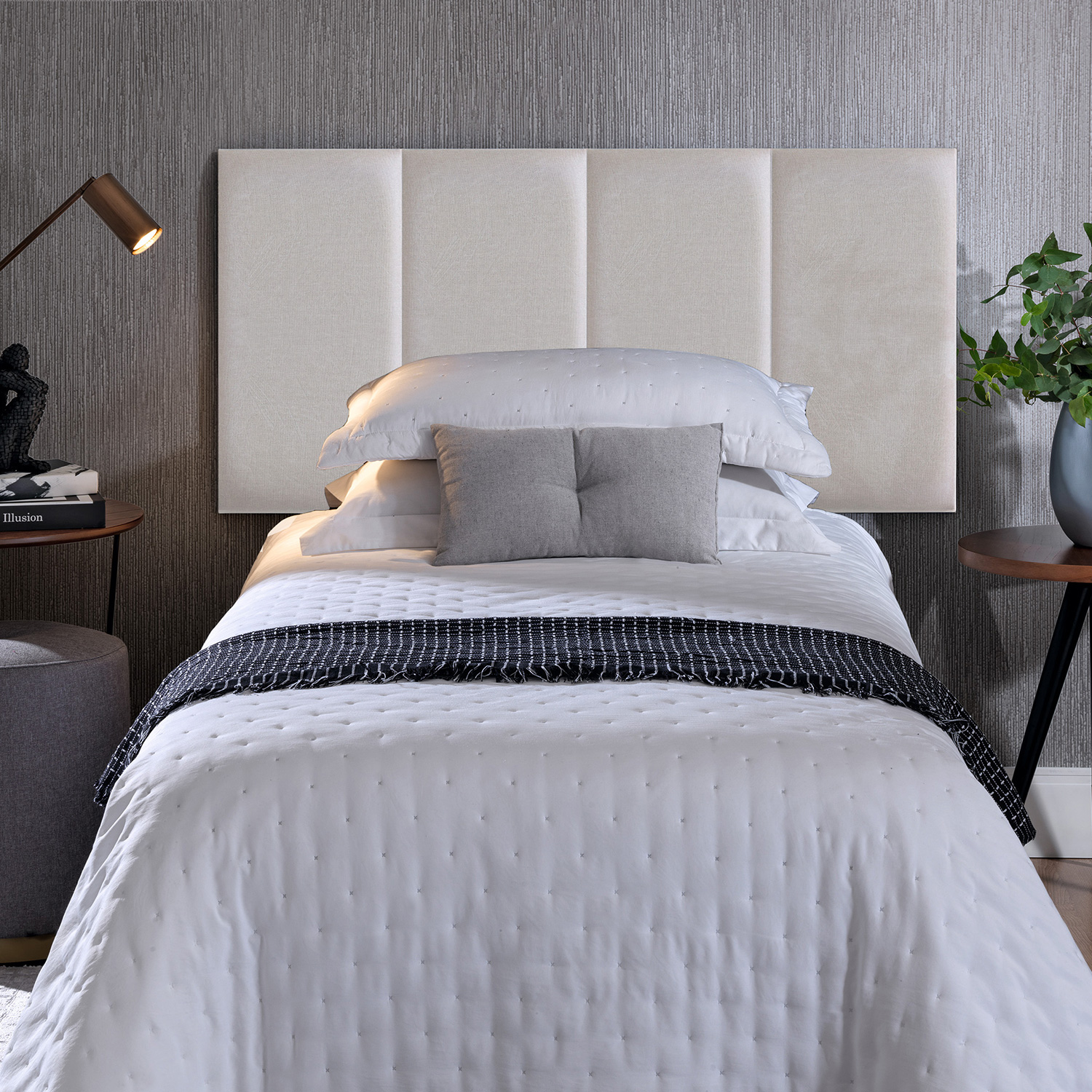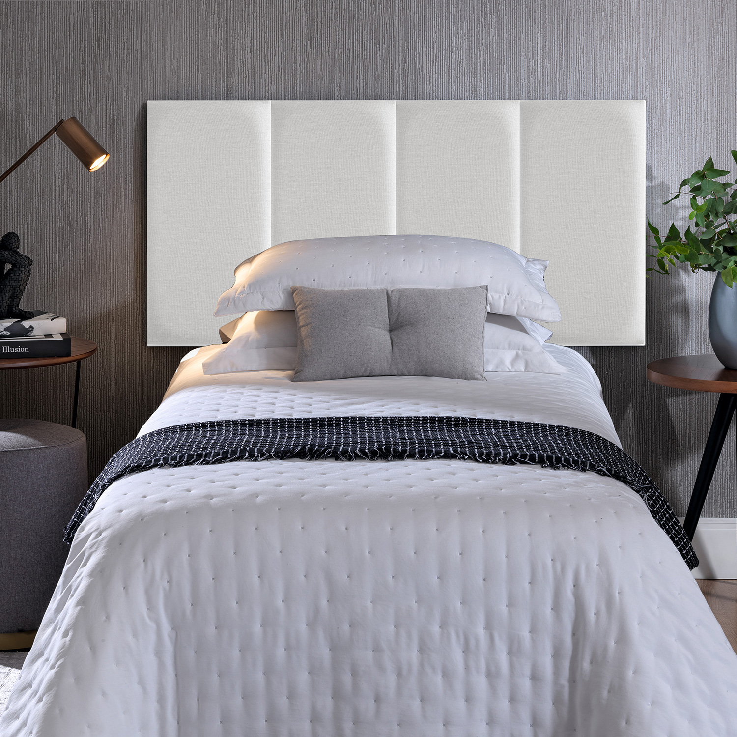 Para compor cabeceira de 8 módulos para colchão King, use 2 conjuntos de solteiro.